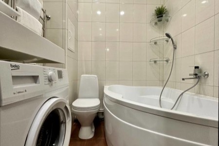 - Оборудование: гладильная доска, духовой шкаф, кондиционер, микроволновая печь, набор посуды, плита электрическая, стиральная машина, сушилка для белья, телевизор, утюг, чайный набор посуды, электрочайник
